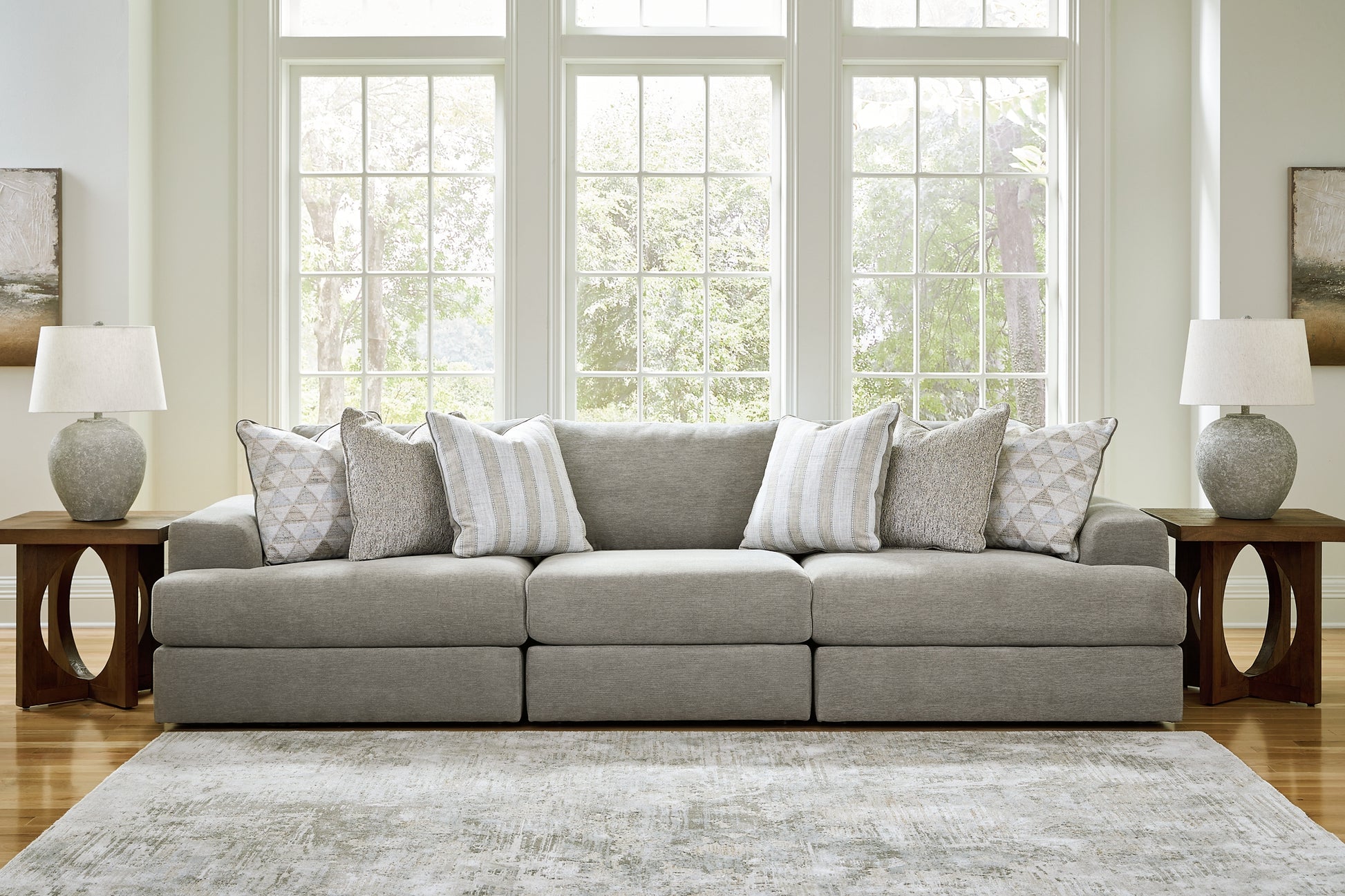 The casual, low-slung shape of this sectional makes it fully lounge-ready. Its deep seating invites you to sink right in, with bold beveled block arms that are softened by bullnose “waterfall” cushions. Best of all, the modular design lets you stage the pieces solo or rearrange them, for a look that's always fresh. Whether you're enjoying the company of friends or relaxing by yourself, this sectional's remarkable quality and smart style are sure to delight.